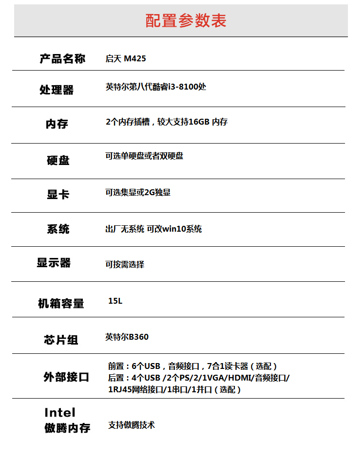 • 联想启天 M425 I7-8700 4G 1T DVDRW 2G DOS 19.5