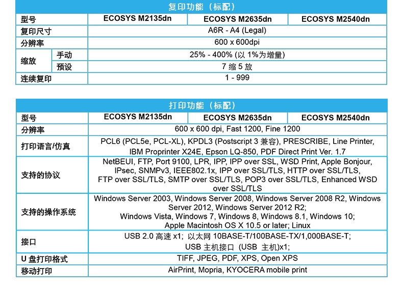 • 产品名称:京瓷(KYOCERA) M2540dn 黑白激光一体机 (打印/复印/扫描/传真 支持自动双面打印/黑白打印速度40ppm/支持有线网络打印)
